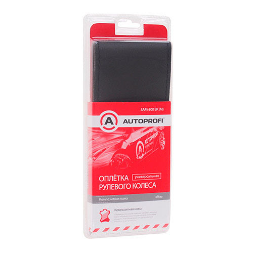 Оплетка для перетяжки руля Autoprofi SAM-300 BK (M) M черная композит. кожа