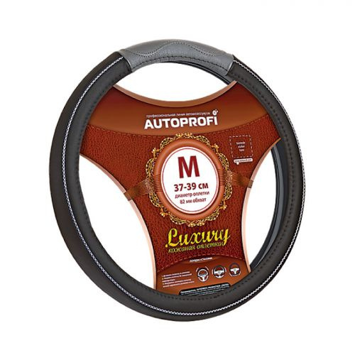 Оплетка руля Autoprofi LUXURY AP-1080 BK/GY (M) черно-серая натуральная кожа