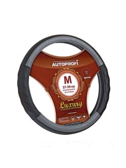 Оплетка руля Autoprofi LUXURY AP-1070 BK/GY (M) черно-серая натуральная кожа с прострочкой